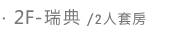 | ※ | 包棟方案A-開放房型: 2F:丹麥6人套房、冰島4人套房、瑞典2人套房,3F:芬蘭4人套房、挪威4人套房 |